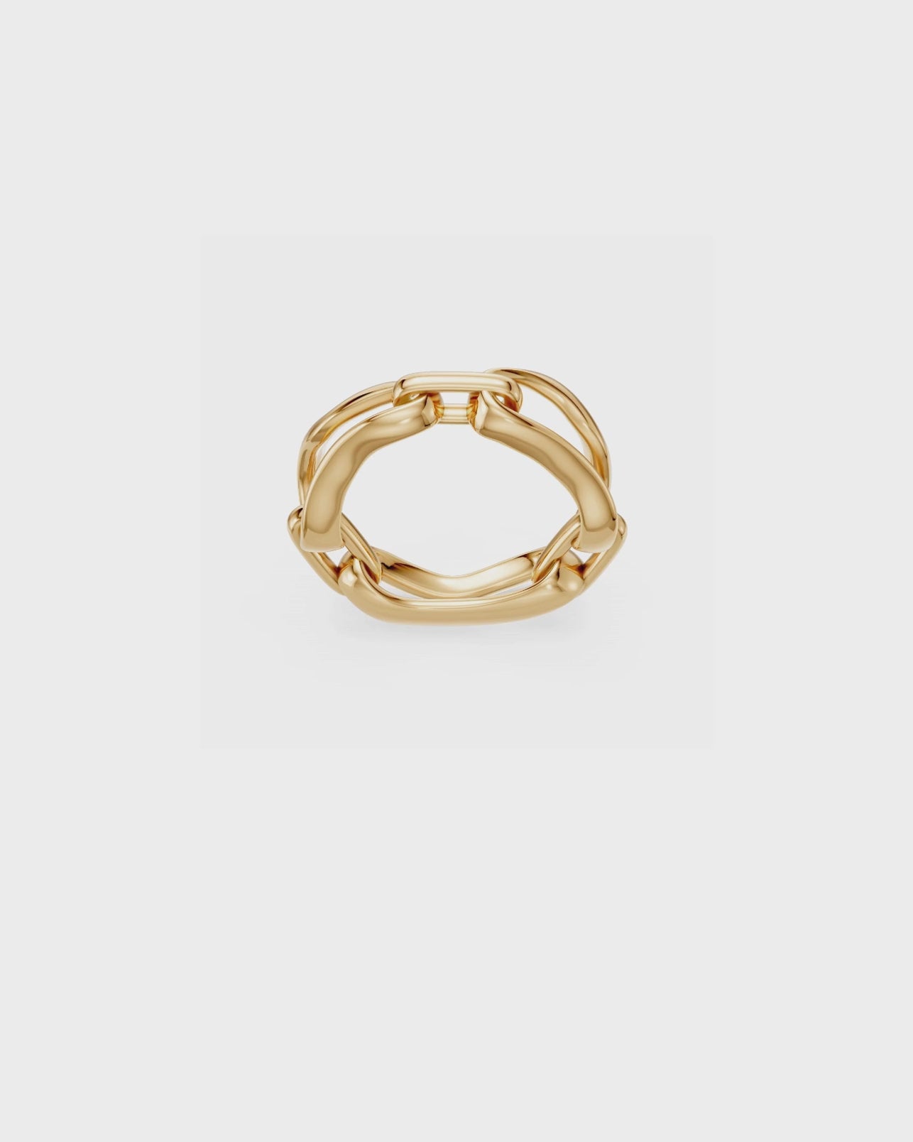 The Crushed Link Gold Ring isolates the sculptural B Link form from the collection and compresses it into a wearable band.